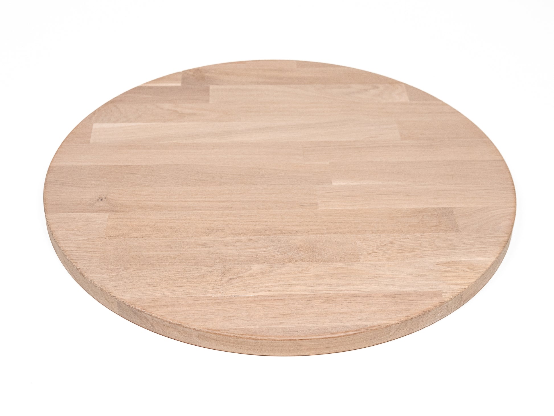 Apaļā darba virsma ir izgatavota no līmēta masīvkoka ar audzētām lamelēm – stabila, formu noturoša un izmaksu ziņā efektīva konstrukcija. Šī tehnoloģija garantē gludu virsmu un samazina izliekšanās risku.