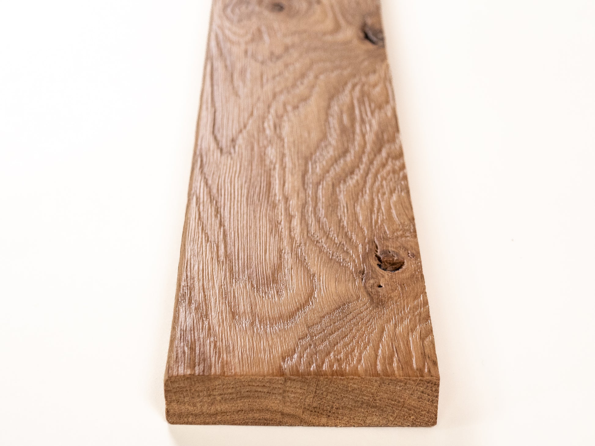 Crafted from premium solid oak in rustic grade, our skirting board is a refined finishing element for any interior, adding warmth, depth, and continuity to your space. The natural oak surface features beautifully expressive knots, subtle cracks, and vibrant grain patterns that celebrate the authentic character of the wood.